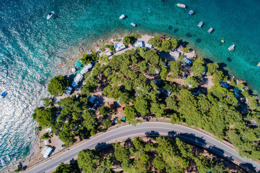 Camping Village Poljana se nahaja neposredno na obali in ponuja možnost bivanja v sodobnih mobilnih hišicah.Nekatere so nameščene na terasah s pogledom na zaliv, ali na širokih parcelah, v bolj senčni površini blizu čolnarne ali s čudovitim pogledom na morje. V campu so tudi trgovina, otroška igrišča ter pomol s privezom za čolne.