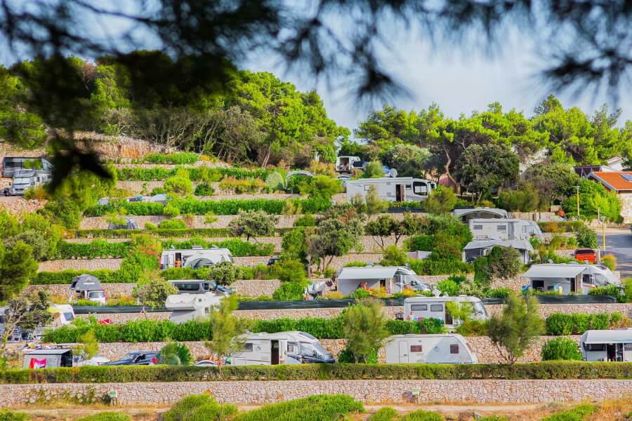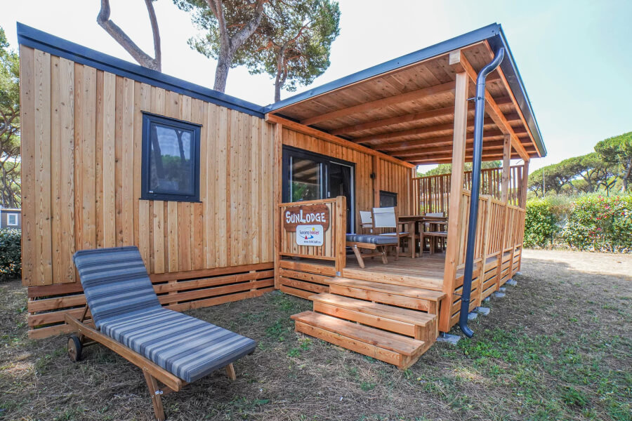 Sodobne mobilne hišice s klimatsko napravo in satelitsko televizijo, nekatere so nameščene na terasah s pogledom na zaliv, ali na širokih parcelah, v bolj senčnem območju v bližini čolnarne ali s čudovitim pogledom na morje.